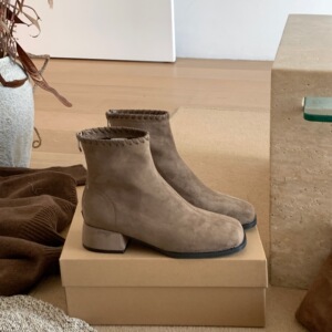 MARCO&JOYCE法式粗高跟及踝靴马丁靴女鞋2025新款秋冬季短筒方头