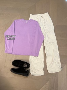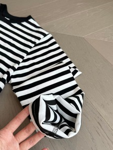032308 2025春夏休闲风圆领条纹长袖T恤休闲正肩