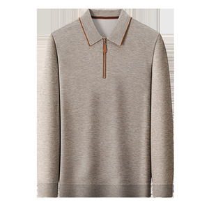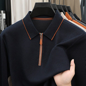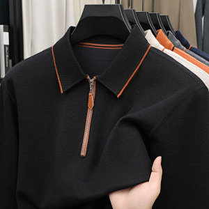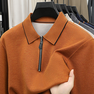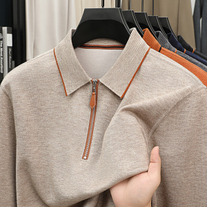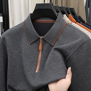 2025秋季拼色长袖休闲含羊毛针织翻领半拉链T桖男士polo衫