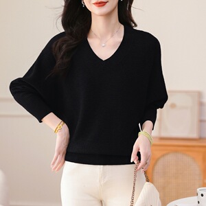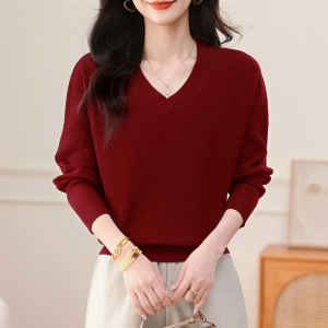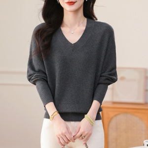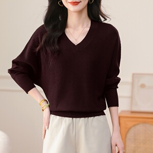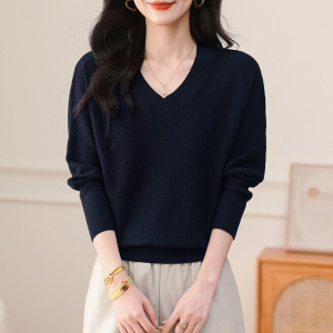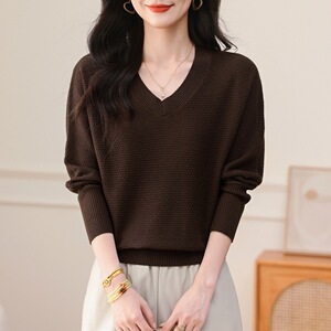 2025秋冬新款气质宽松显瘦纯色内搭长袖毛衣短款V领针织打底衫女