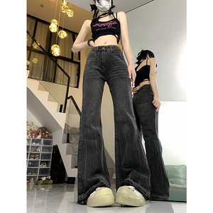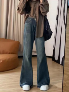 大码复古美式微喇叭牛仔裤女秋胖mm宽松显瘦高腰直筒阔腿拖地裤