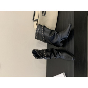 2025新款美式辣妹皮带扣裤管靴短靴女靴尖头西部牛仔靴