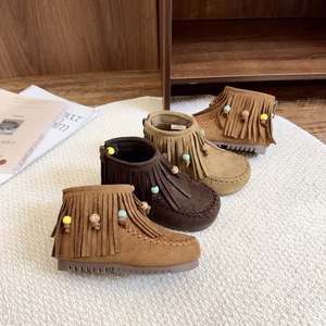 女童软皮韩版流苏靴2025秋季新款宝宝小女孩公主靴儿童后拉链短靴