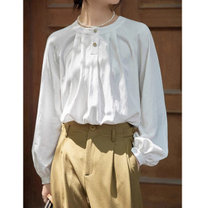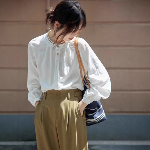 法式通勤气质白色长袖衬衫女春秋季休闲百搭小个子灯笼袖衬衣上衣