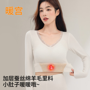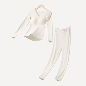 秋冬桑蚕丝无痕保暖内衣女带胸垫保暖套装高弹显瘦百搭打底衣蕾丝