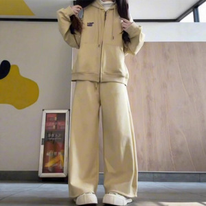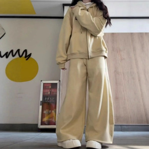 慵懒风杏黄色重磅套装(卫衣开衫+长裤)