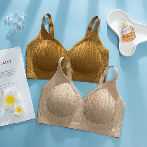 法式蕾丝网纱内衣大胸显小防下垂聚拢无钢圈舒适透气固定杯文胸罩