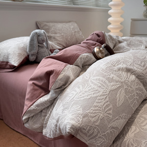 高级感纯棉立体提花四件套全棉磨毛加厚100棉被套床单床笠款床品