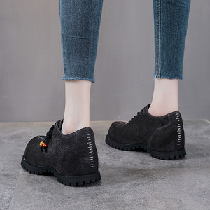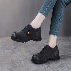 内增高单鞋女春秋季新款真皮复古百搭休闲鞋系带厚底英伦风皮鞋子