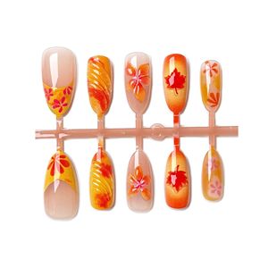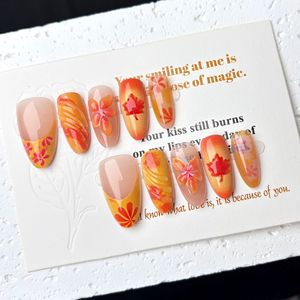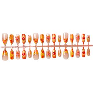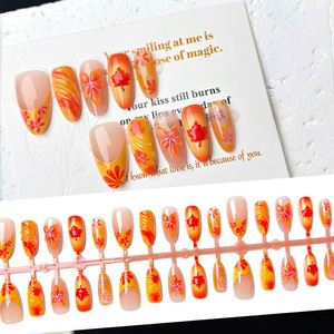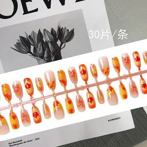 秋冬爆款金色系法式短杏仁穿戴甲3D立体滴胶跨境美甲贴片金色系