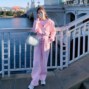 休闲洋气套装女春秋新款韩版长袖粉色减龄时尚卫衣外套百搭两件套