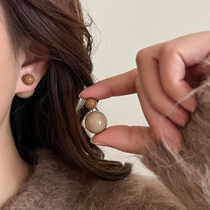 银色拉丝圆球耳钉女2025新款爆款耳环秋冬复古轻奢高级感气质耳饰
