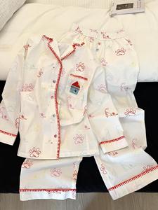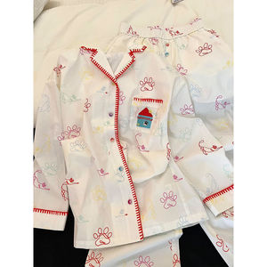 卡通可爱狗爪印花睡衣女秋季新款大码长袖翻领可外穿家居服套装潮