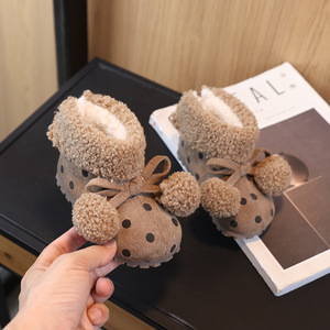 儿童雪地靴冬季新款可爱毛球短靴翻边宝宝二棉波点棉鞋女童小棉鞋