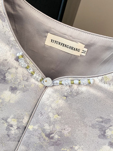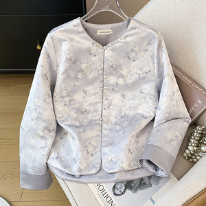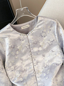 实拍新中式复古改良民族风重工提花拼接圆领缎面提花盘扣长袖上衣