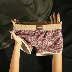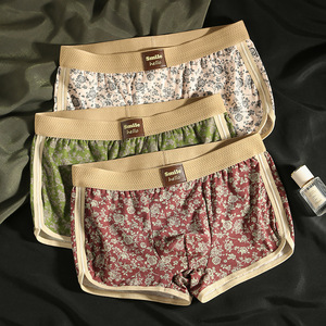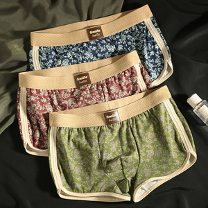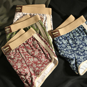 古典玫瑰印花男士内裤柔软舒适中腰棉质国风平角裤透气四角裤