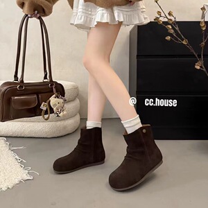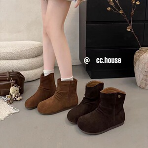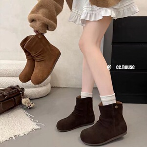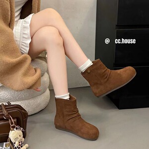 真皮女鞋褶皱堆堆靴女2025秋季新款时尚百搭轻便内增高休闲短靴潮
