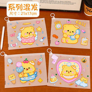 奶黄小熊文件袋学生全班奖励文具奖品收纳袋高颜值可爱pvc文具袋
