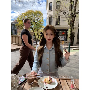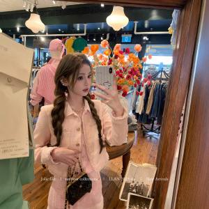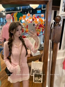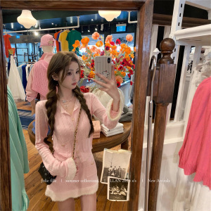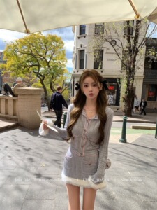 你的懒懒llan25B蓝花楹宽松拼接纱线毛感针织上衣+半裙套装