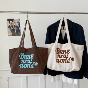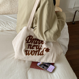 ins大容量字母刺绣单肩帆布包通勤外出慵懒百搭托特包手提购物袋