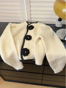 小香风气质毛衣外套女秋冬修身短款山茶花针织衫开衫春秋新款上衣