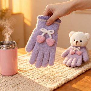 儿童4-10岁冬季樱桃五指分指手套男女童宝宝防寒保暖可爱卡通学生
