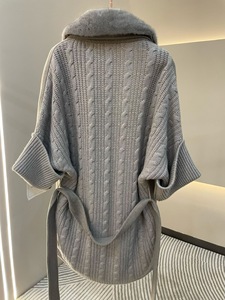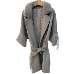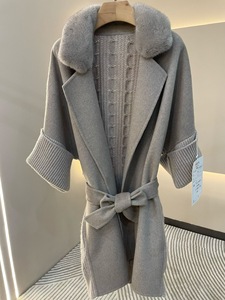 外贸lp同款2025冬水貂领针织羊绒拼接貂皮皮草毛呢外套中长款大衣
