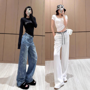 新塘女款牛仔裤2025新款百搭小个子高级感高腰修身显瘦直筒牛仔裤