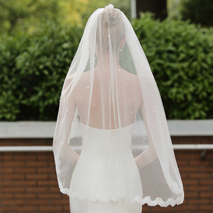 V1733新娘结婚蕾丝密钉珠缝发梳新娘拍照结婚中长腰部1米面头纱