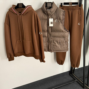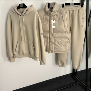 保暖三件套l拉链口袋马甲外套+长袖连帽加绒卫衣+松紧腰束脚长裤