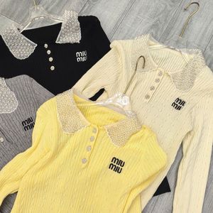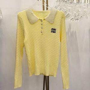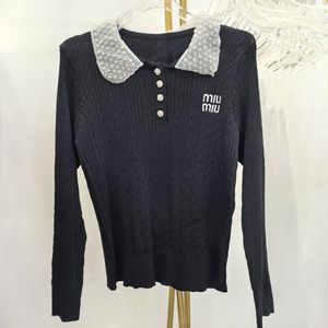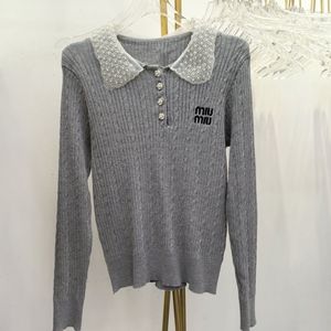 秋冬重工娃娃领钉珠女小香风精美洋气网红同款字母针织长袖上衣女