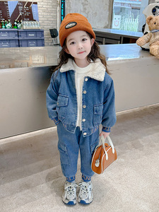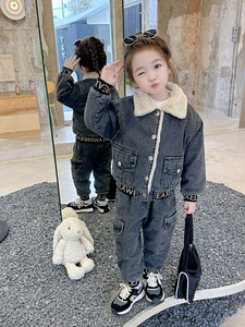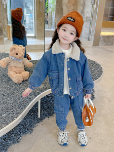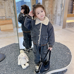 童装儿童冬装套装2025新款秋冬男女童时髦牛仔两件套加绒加厚洋气