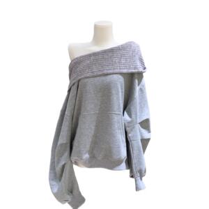 斜肩一字领宽松套头连帽卫衣露肩上衣女