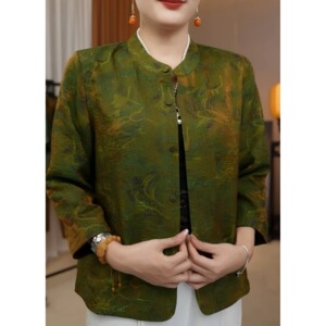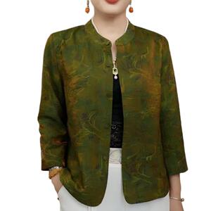 新款国风插肩袖宽松型短外套时尚印花长袖百搭衬衫