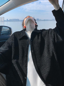 斑马纹小香风外套男春秋美式痞帅重磅上衣潮流宽松休闲衬衫款夹克