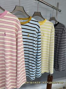 韩系小马刺绣百搭条纹打底衫 25秋季上新韩版休闲上衣圆领长袖T