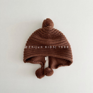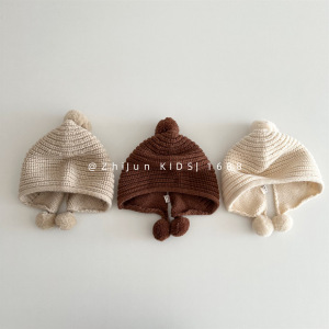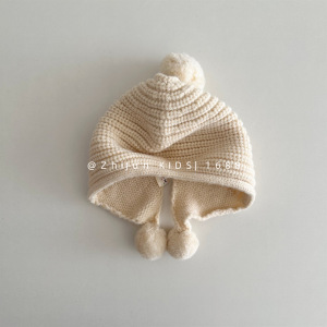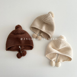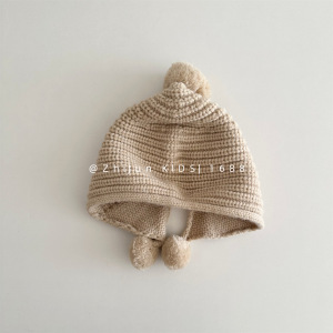 冬季儿童韩版针织包头帽子保暖护耳毛球防风可爱男女宝宝套头帽子