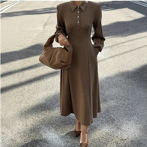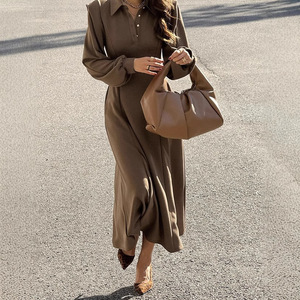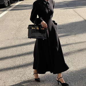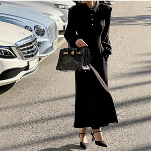 韩国ins2025秋日新款法式高级感POLO领单排扣优雅气质长款连衣裙