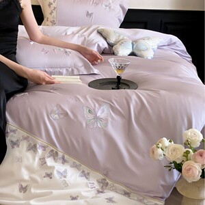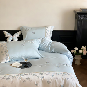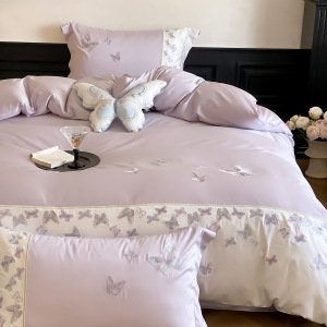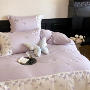 浪漫少女心刺绣全棉三四件套轻奢纯棉长绒棉被套床单居家床上用品