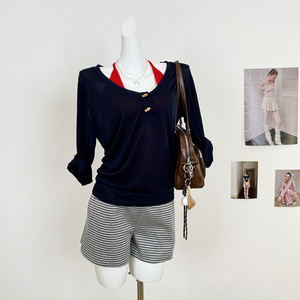 秋季美式辣妹设计新款清冷松弛感穿搭三色木扣打底罩衫吊带两件套
