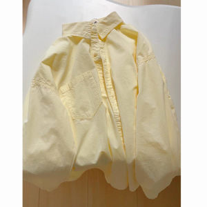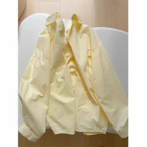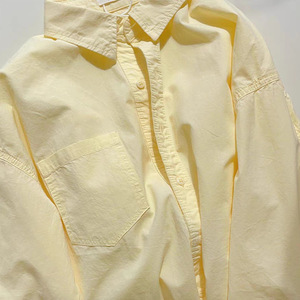 墙裂推荐!海盐芝士~奶油黄长袖纯棉衬衫女韩版宽松小众百搭上衣