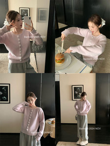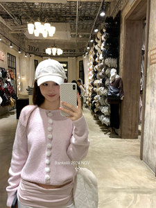 板栗可可Bankelili 麻薯 新款秋冬圆领仿水貂毛球针织衫毛衣女