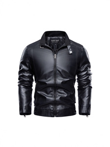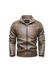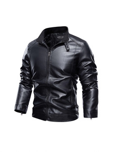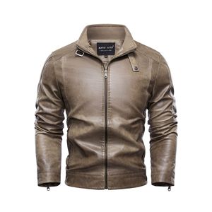 跨境专供欧美大码立领男士皮衣复古水洗秋冬季保暖潮流男装皮夹克