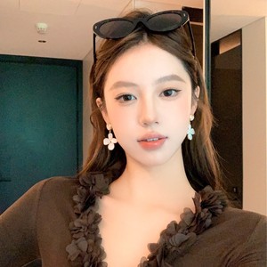 琥珀焦糖 复古四瓣花耳环2025新款秋冬独特高级感耳饰