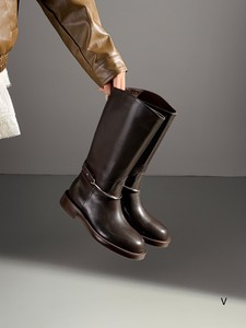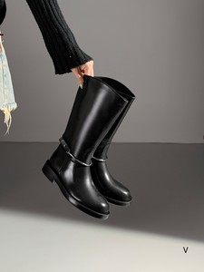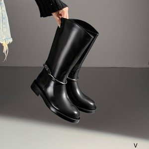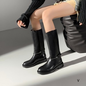 欧洲站女鞋25秋冬时尚软胎牛皮圆头休闲舒适款套筒平底皮带扣长靴