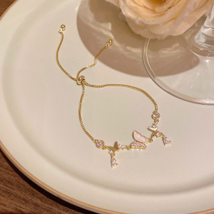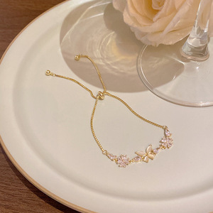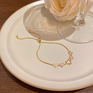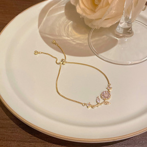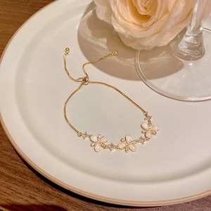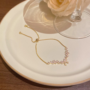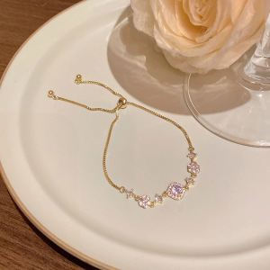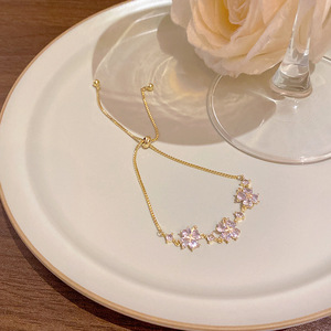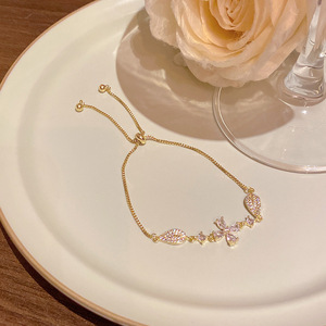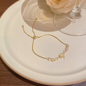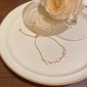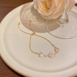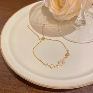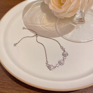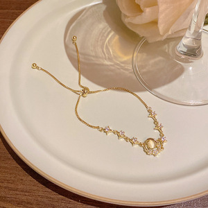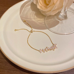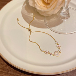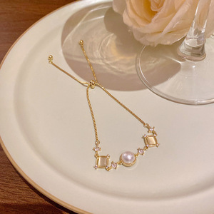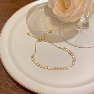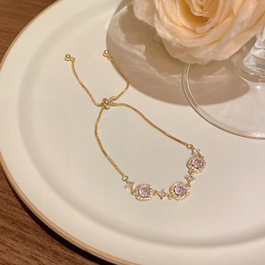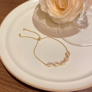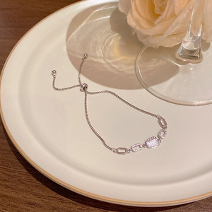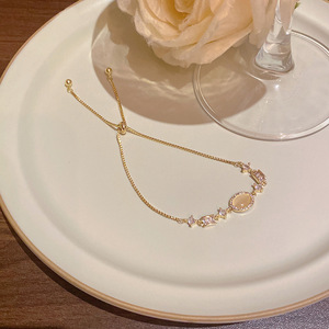 韩版轻奢铜镶锆石手链女高级感百搭椭圆猫眼石手环气质时尚手饰品