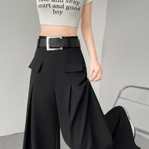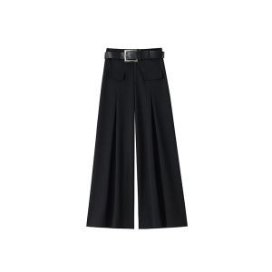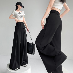 黑色直筒西装裤女2025新款高级感垂感阔腿裤小个子高腰显瘦拖地裤