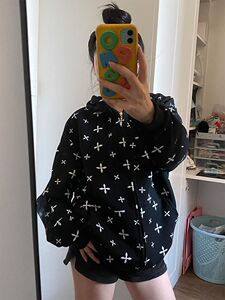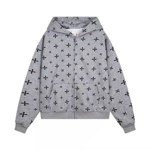 美式高街满印十字花开衫连帽外套女2025新款春秋薄款宽松拉链卫衣