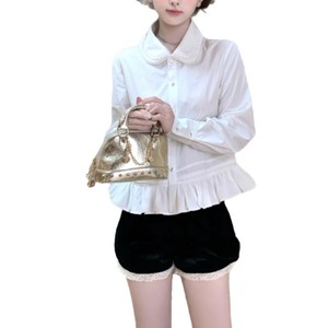 25/fw 绢羽笔尖小卓花边拼纱下摆刺绣领棉白衬衫上衣秋季长袖女装
