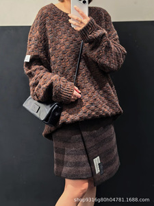 南油高板本25秋冬新款美拉德复古风混纱圆领羊毛套头毛衣男女同款